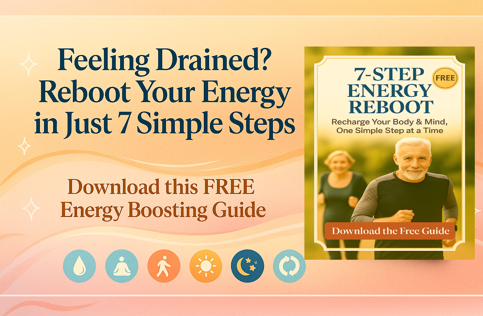 If you’re dehydrated — and many adults over 50 are, simply because thirst cues fade with age — you feel even more wiped out.