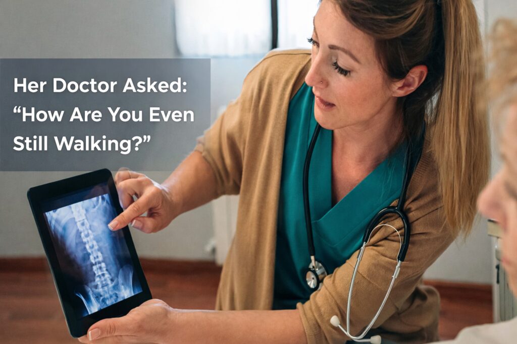 By her forties, imaging scans showed a significant C-curve in her spine.